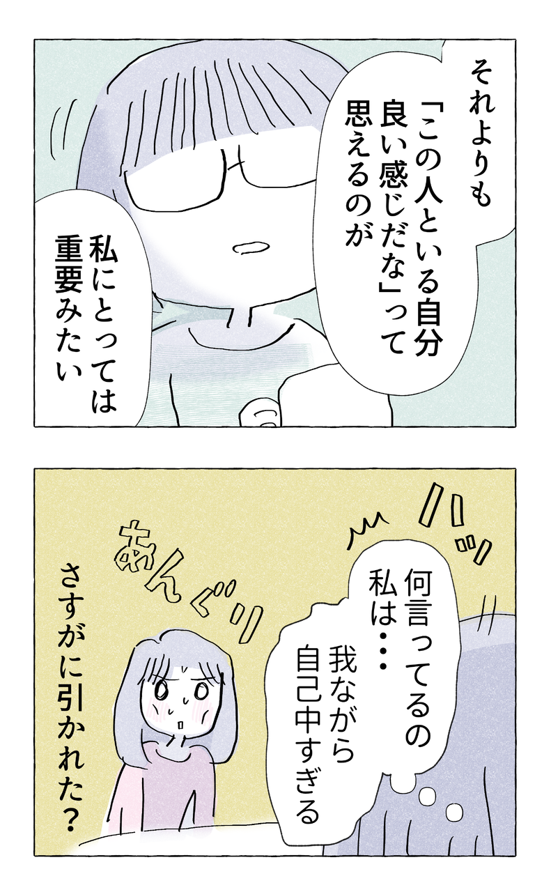 やさしさに溺れる・64 2022/09/21 はじめから読む前回のお話第64話次のお話田端先輩と仲良くなったきっかけエピソードはこちら👇👇👇読者登録はこちらから👇👇👇ライブドアブログがアプリで読めるようになりました!(アプリのインストールが必要です)画像をクリックしていただけると福々ちえのフォローページに飛びます。ぜひ読者登録お願いいたします^^////// 完結WEBコミック //////【セミフィクション】スパイスカレーで気合いを入れ奮闘する女達【35話/続編準備中】【セミフィクション】優しさがすぎて過保護気味な母の愛が暴走する【全86話】【セミフィクション】頑張っているのに報われない💢仕事ができる女の恋【全11話】【エッセイ】夢に生きるか?現実に生きるか?の分かれ道【全22話】【エッセイ】家族みんなの幸せ目指して戦います【全13話】【著書紹介】↓↓↓試し読みはこちらから↓↓↓ 「コミック」カテゴリの最新記事 タグ :#ふくふくちえ#自己紹介#福々ちえ < 前の記事次の記事 > コメント コメント一覧 (2) 1. キムラ 2022/09/21 23:54 Twitterで知り、拝見しました。 私は男です。 こちらの作品は女性向けなのかもしれませんが、私も親であり子であり、親元を離れて暮らす社会人で、後輩を指導しております。 全てのキャラクターの視点に共感しながら夢中でこれまでの作品を読みました。 面白いです。 なんだか、少し、私の生活の楽しみが増えました! 0 福々ちえ がしました 2. わかるー! 2023/04/21 13:17 「この人といるときの自分が好き」って大事だと思う。 それって、自然体でいられてるってことだから。 0 福々ちえ がしました コメントフォーム 名前 コメント 記事の評価 リセット リセット 顔 星 情報を記憶 コメントを投稿する