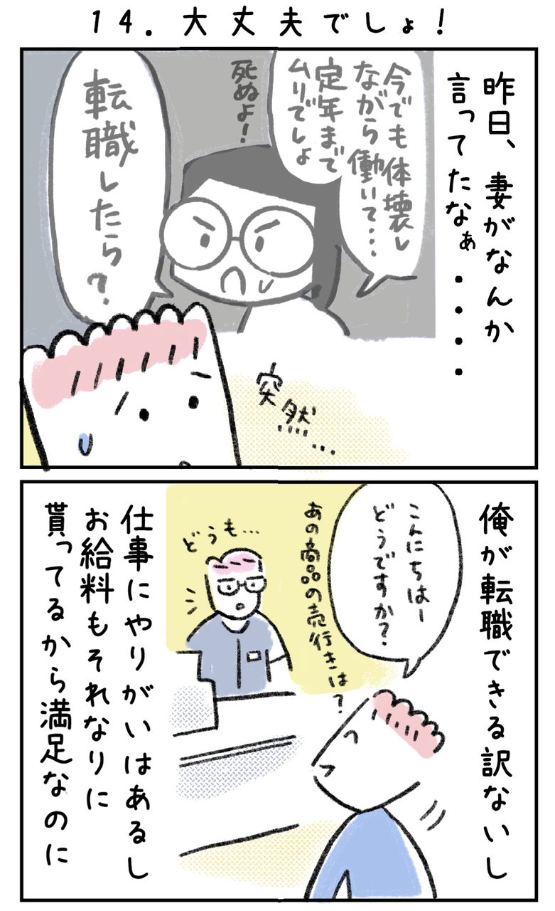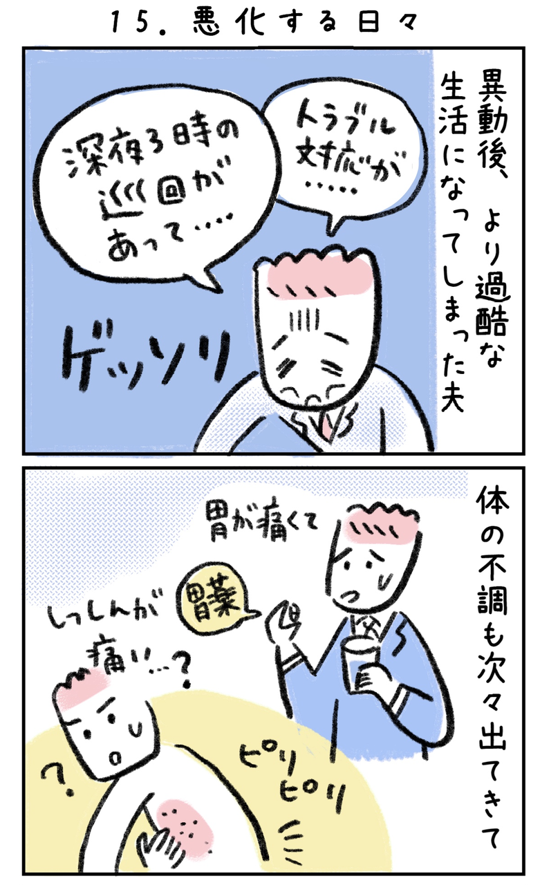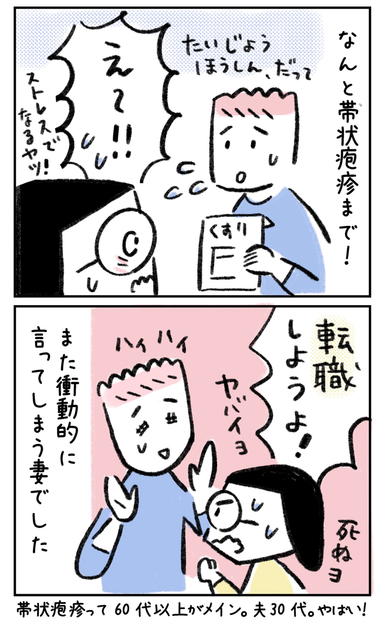 身も心も削りながら仕事してるの見てると、ホント転職して欲しくなりますよね。わーわー言ってしまう気持ち分かります。こっちもワンオペで仕事家事育児でボロッボロだし、土日もいないので自分が休む時間が全然ないし(_ _)