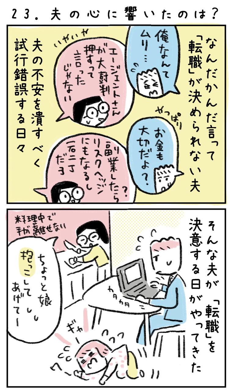 個人的にはこのささいなやりとりで旦那さんが我に返ったの、すごく旦那さんへのプラスイメージだし、重要なシーンだと思いました。