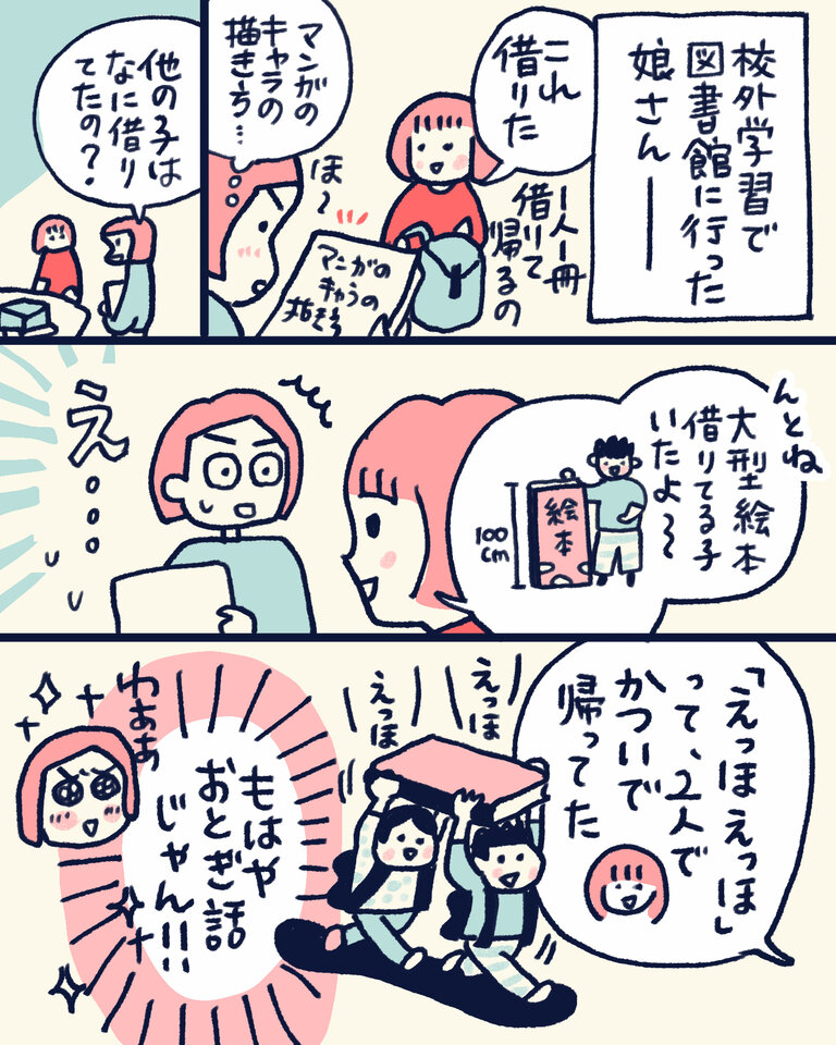 と大型絵本を担いでいる描写があまりにも可愛らしくてツボっちゃいました