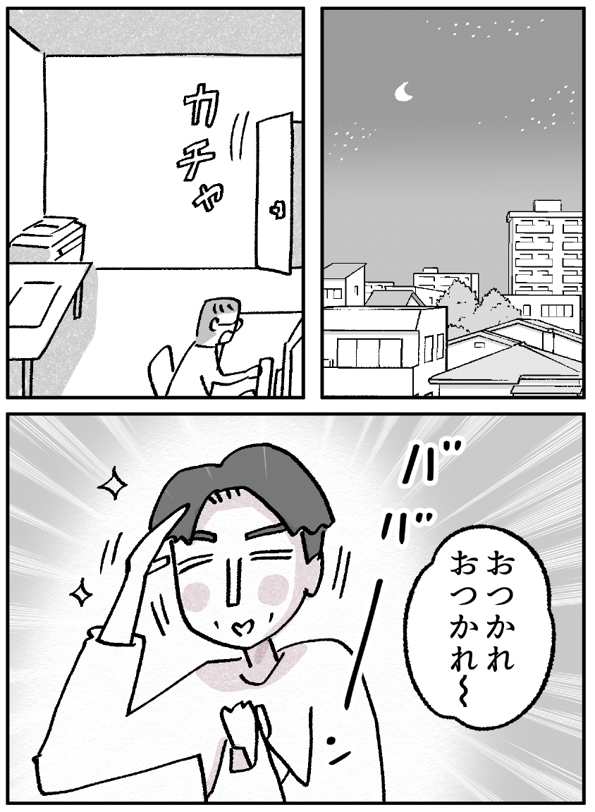 これで明日の朝、先輩ににっこり笑顔で挨拶できるか、先輩もそれにどう返せるかで二人の人間としての度量が決まる気がする